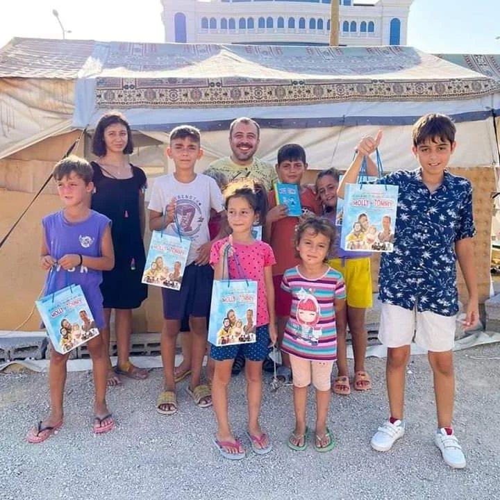 Gidilen bölgedeki konteyner kentlerde yaşayan yüzlerce depremzede çocuklara Yakamoz Yayınlarından çıkan MOLLY İLE TOMMY / SİHİRLİ MİRAS kitabını ve yanı sıra ıslak mendil ile kolonya hediye edildi. Bu bağlamda çocukların bir nebze de olsa yüzlerini güldürmeye, onları mutlu etmeye çalışıldı.