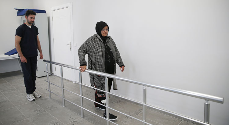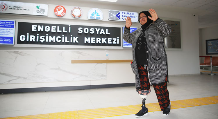 Emine Kahramanoğulları, deprem sırasında panikle evden çıktığı sırada yara alan bacağının tedaviye rağmen iyileşmediğini belirterek, “Hastaneden sonra memlekete dönüp kızımın evine gittim. Kızım bana baktı ama çok acılar çektim. Ayağa kalkmak, yürümek istiyordum ama maalesef düşüyordum. Bir tanıdığım sayesinde Hatay Engelli Sosyal Girişimcilik Merkezini duydum. Merkezde çok güzel karşılandık. Allah hepsinden razı olsun. İlk zamanlar istediğim gibi yürüyemediğim için çok üzülüyordum ama bu protezle ayağa kalkınca çok mutlu oldum. Tekrar ayağa kalkacağımı hiç düşünemiyordum.” dedi.