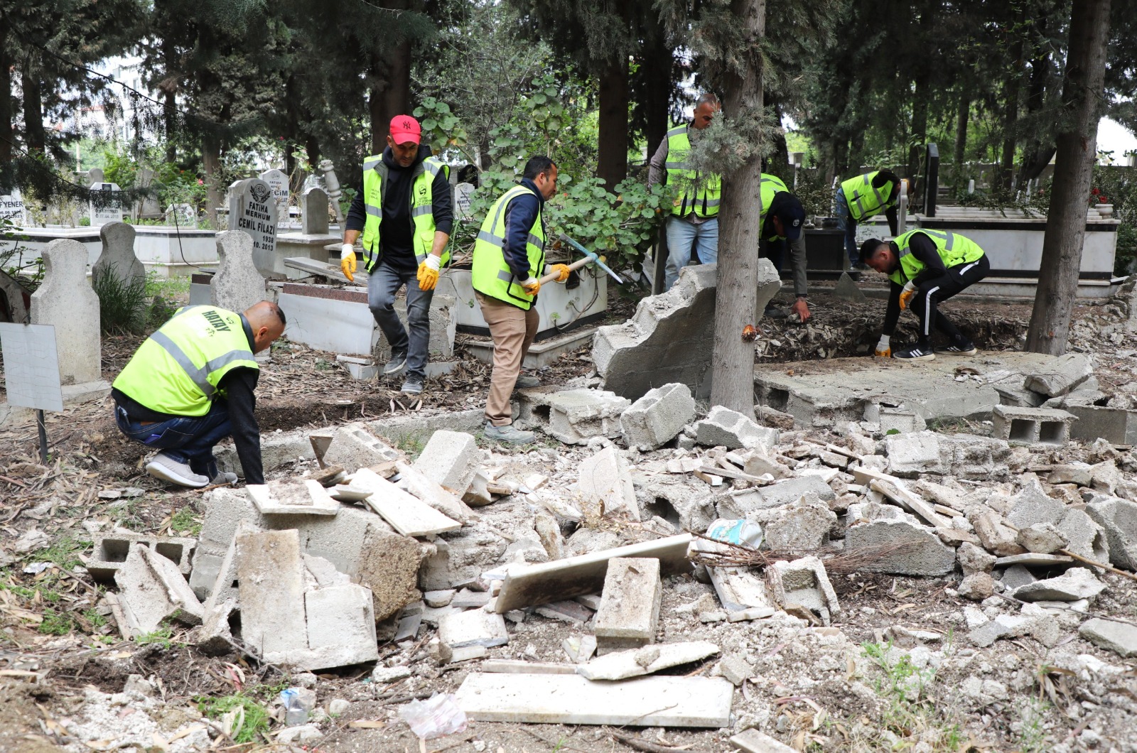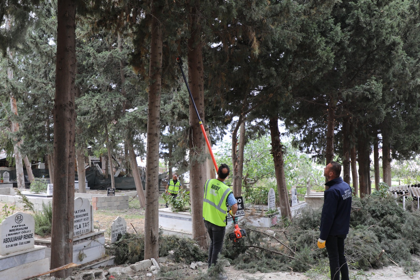HBB Mezarlıklar Dairesi Başkanlığına bağlı ekipler, Defne ilçesine bağlı Çekmece Mahallesi’nde bulunan Armutlu Mezarlığı’nda çalışmalar kapsamın yabani otların biçilmesi, çevre düzenlemesi ve yürüyüş yollarının temizlenmesinin yanı sıra bakım çalışmaları kapsamında zarar gören alanların onarımı ve çevre duvarlarının elden geçirilmesi gibi işlemler de yapıldı.