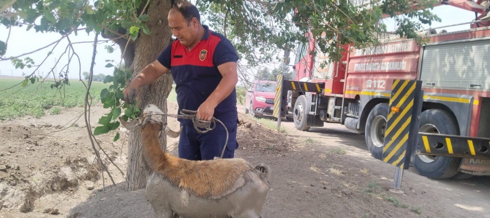 Kırıkhan ilçesi Muratpaşa Mahallesi'nde sulama kanalına düşen bir teke, HBB itfaiye ekiplerinin hızlı müdahalesiyle kurtarılarak sahibine sağlıklı bir şekilde teslim edildi.