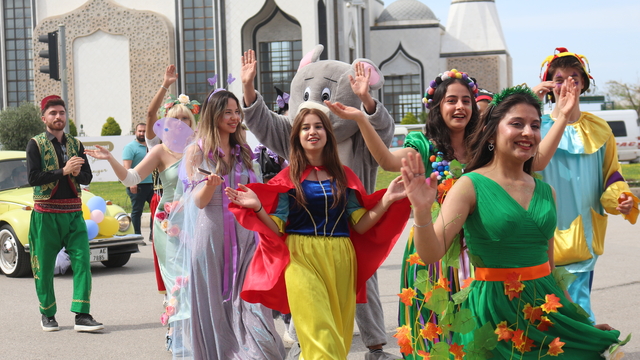 İlçedeki Fener Caddesi'nden hareket eden kortej, bando takımlarının eşlik etmesiyle Millet Bahçesi'ne geldi. Burada yüz boyama etkinliğine katılan çocuklar daha sonra maskotların sunduğu gösteriyi izledi.