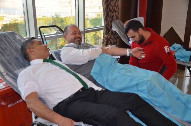 İskenderun Ticaret ve Sanayi Odası 3. Kat fuaye salonunda gerçekleştirilen kan bağış kampanyasına, İTSO Yönetimi ve meclis üyeleri katılarak kan bağışında bulundular. Türk Kızılay Hatay Kan Bağış Merkezi Müdürü Dr. Cesur İnan, İş İnsanı ve Yazar Seval Kirmit Yazar, Yarikkaya.com İmtiyaz sahibi Gazeteci Hasan Büyük, Türk Kızılay Hatay Kan Bağış Merkezi Kan Bağışı Kazanım Uzmanı İsmail Sade, Türk Kızılay Hatay Kan Bağış Merkezi Kan Bağışı Kazanım Uzmanı Esra Memili, Türk Kızılay Arsuz Koordinatörü Muharrem Özbakış, Arsuz Kızılay Derneği Başakanı Vedat Tosun da İskenderun Ticaret ve Sanayi Odasında düzenlenen kan bağış kampanyası etkinliğine katıldılar.
